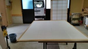 今週から湯沢町の2世帯のマンションの内装工事の為、湯沢へ通っています。いつもは畳工事がメインで入らせて頂いていますが今回は畳工事以外にクロス・クッションフロア・カーペット・障子・襖の張り替え工事もという事で忙しい毎日を送っています。湯沢までは1時間ちょっとかかりますので、少々残業をさせて頂いています。畳は和紙製の畳表を使った縁無し畳を納入します。